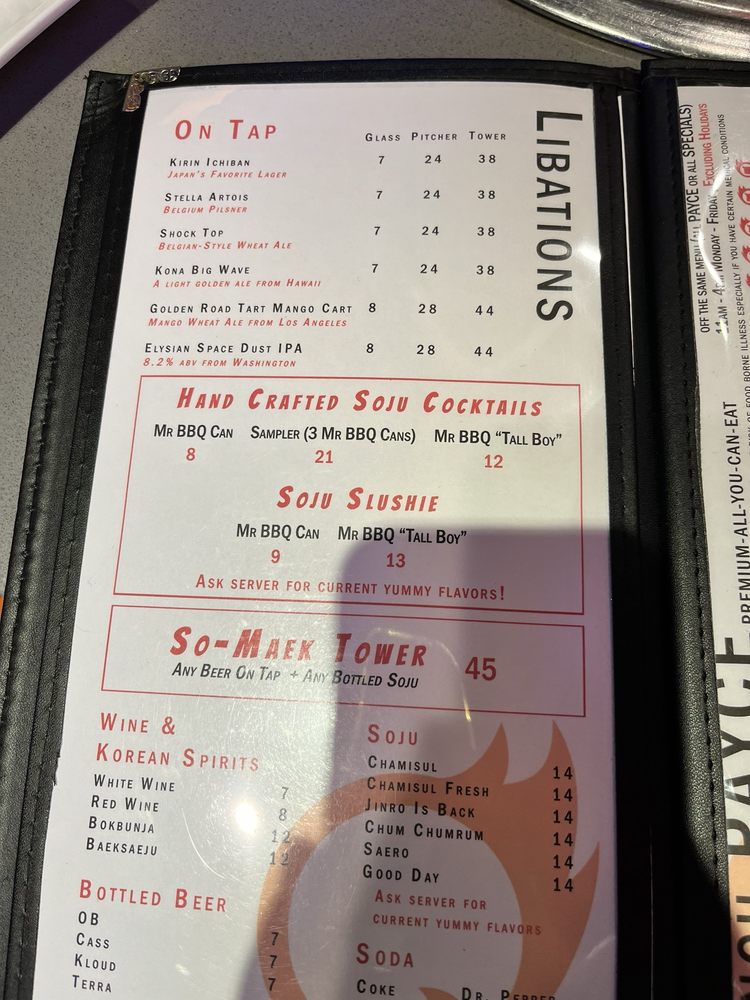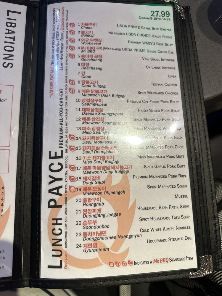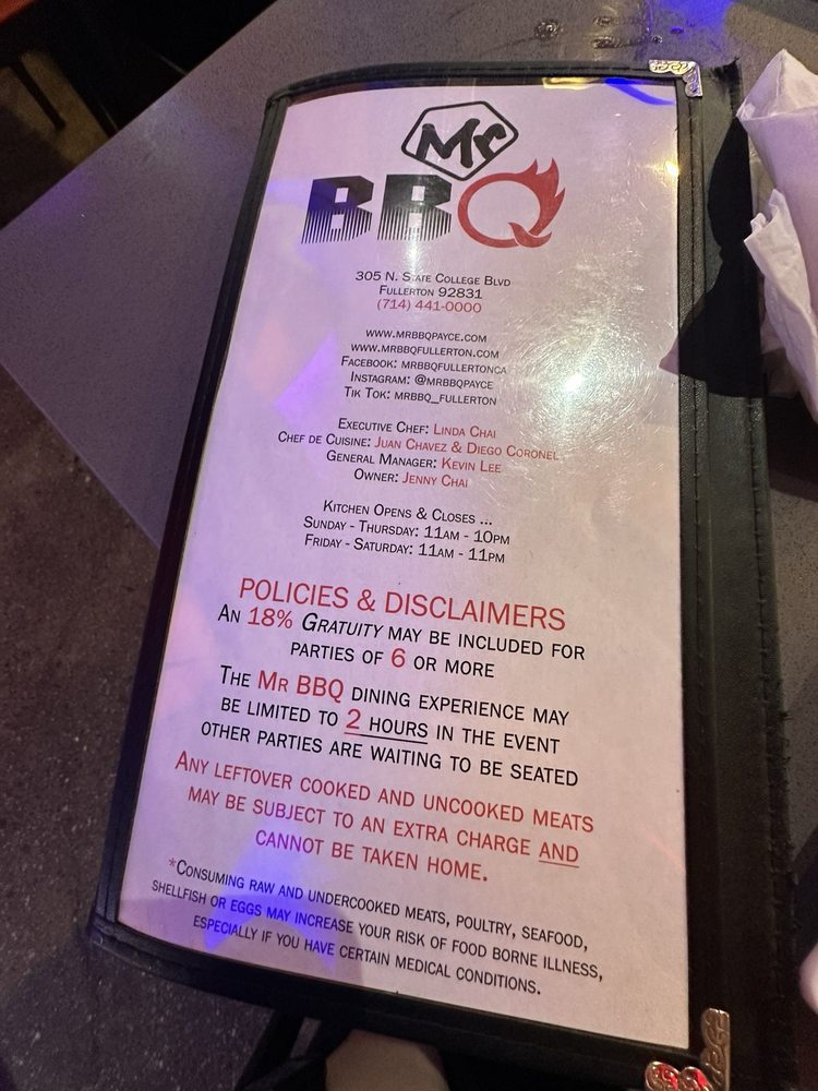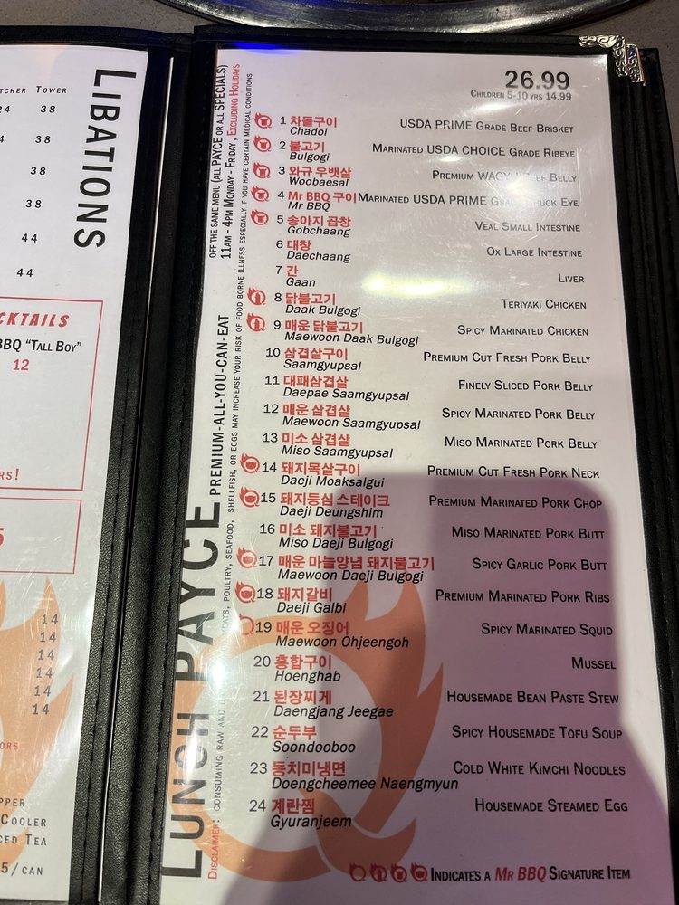 Mr BBQ is a popular Korean BBQ restaurant in Fullerton, CA, offering premium all-you-can-eat options with a modern ambiance. The menu includes a variety of high-quality meats like Wagyu beef belly and USDA Prime Grade top sirloin, as well as delicious sides such as steamed egg and spicy tofu soup. Customers rave about the attentive service, friendly staff, and vibrant atmosphere. The restaurant also offers unique features like slushy soju drinks and complimentary ice cream at the end of the meal. With options for lunch and dinner, Mr BBQ is a must-visit for Korean BBQ enthusiasts looking for a satisfying and enjoyable dining experience.